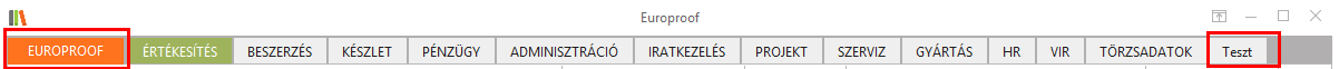 A műveleteket a főképernyőn a fő menüsor Europroof és/vagy Felhasználó név menüpontjainak segítségével hajthatja végre.