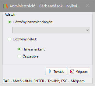 Itt ki kell választani, hogy az új bizonylat előzménybizonylat alapján készüljön-e (kivéve Új árajánlat gomb, mert ott nincs előzménybizonylat), vagy pedig előzménybizonylat nélkül, ezen belül helyszínenként (amennyiben több helyszínt adott meg), vagy egy összesített bizonylat készüljön. Helyszínenként nem külön bizonylat készül, hanem a létrejövő bizonylaton a helyszínek részletezve láthatók.