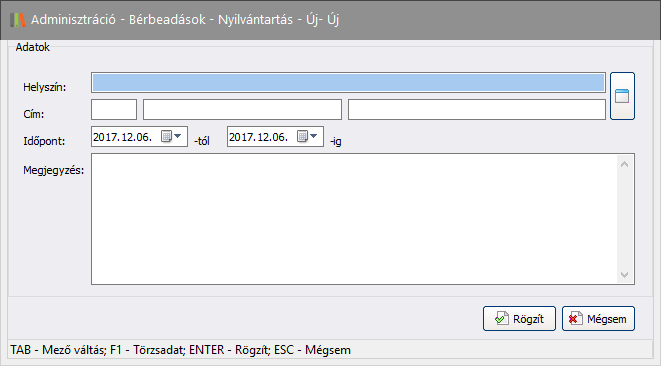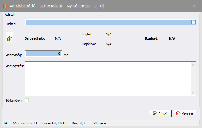 Új bérbeadás rögzítése