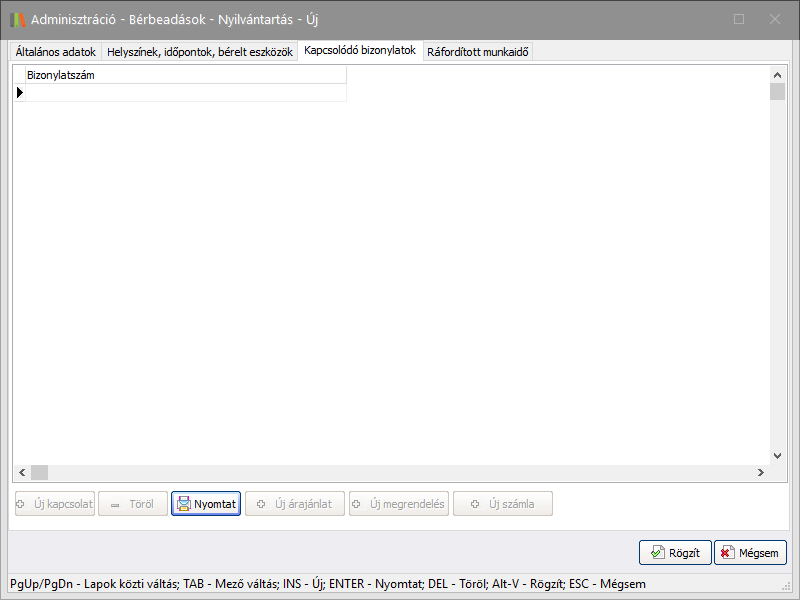 (Új kapcsolat) gomb. Ennek segítségével megadhat Belső bizonylatszámot,és hozzákapcsolhatja azt a bérbeadáshoz.