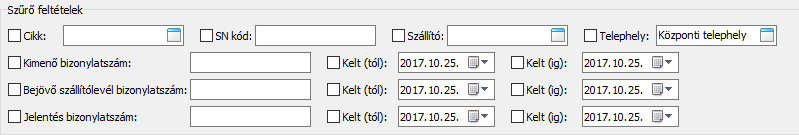 A felső ikonsorban a (Szűrőfeltételek beállítása) gombra kattintva megjelennek a szűrési feltételek:
