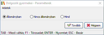 Mind: A rádiógombok segítségével választhatja ki, mely státuszú dolgozók kerüljenek listázásra.