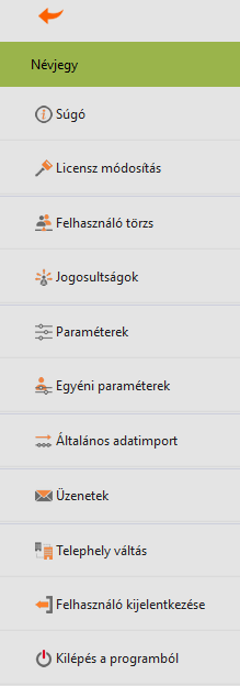 Az alábbi menüpontok érhetők el innen, melyek részletes leírását a vonatkozó fejezetekben olvashatjuk. Azon menüpontokról, melyekről nincs külön fejezet, itt szólunk bővebben.