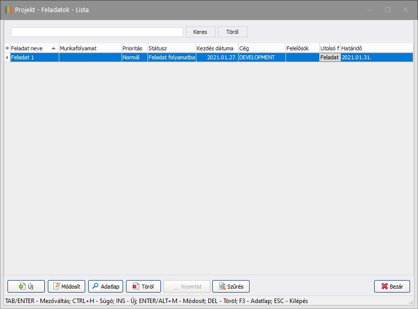 Elérése: Projekt -> Feladatok
