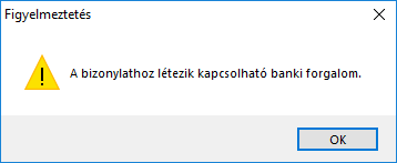 Amennyiben a rendszer kapcsolható pénztár bizonylatot vagy banki forgalmat érzékel, úgy tájékoztatja a felhasználót erről a tényről.