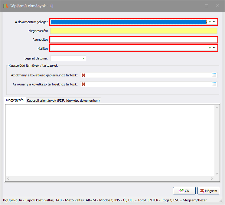 Fontos! Egy okmány vagy csak egy gépjárműhöz, vagy csak egy egyedi tartozékhoz kapcsolható hozzá!