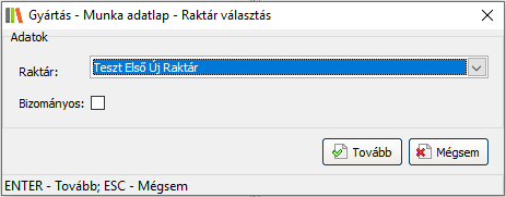 Csak „Ellenőrzött” és „Gyártás folyamatban” státuszú bizonylatok adhatók át gyártásra. E beállítás nem módosítható! |