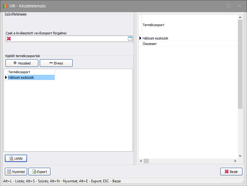 (Hozzáad) gombbal tölhető fel. A gom megnyomása után új ablakban megnyílik a Termékcsoportok törzsablaka, melyből egyesével adhat hozzá a listához termékcsoportot. A Kijelölt termékcsoportok listáról az