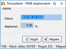Elérése: Törzsadatok -> MNB alapkamat törzs