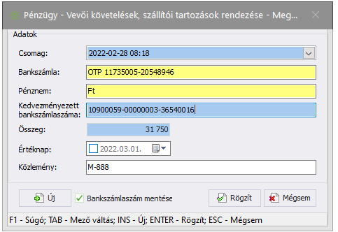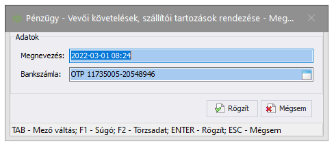 mező értéke alapértelmezetten az aktuális dátum és idő, de szükség esetén ez felülbírálható! - A Bankszámla: