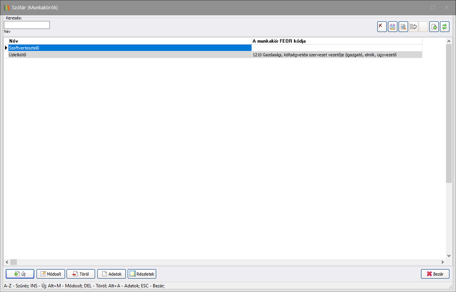 A munkakörök listája a Keresés: mező segítségével név szerint kereshető.