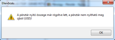 Amennyiben egy pénztár nyitva van, nem nyitható meg újból. Az alábbi tájékoztatás jelenik meg: