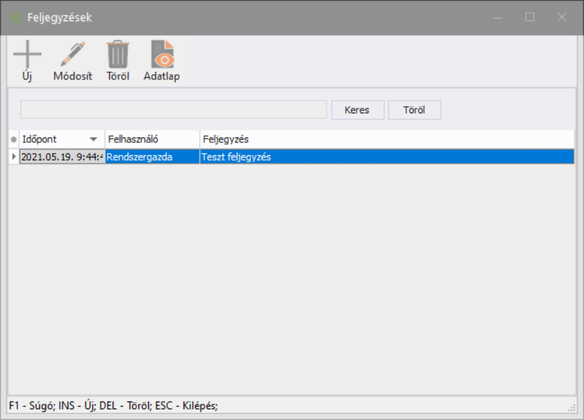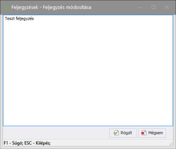 A feljegyzést az alábbi adatbeviteli ablakban rögzítheti. A rendszer a feljegyzéshez automatikusan menti a létrehozás/módosítás időpontját és a felhasználót.