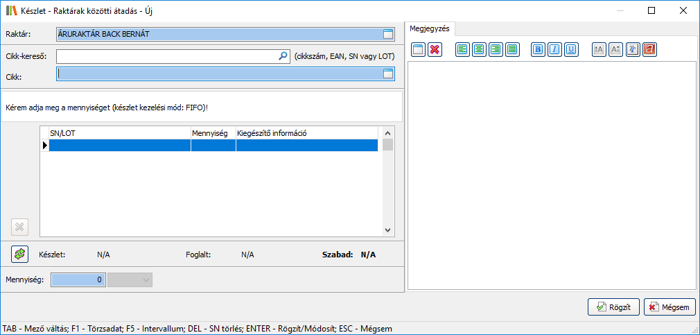 mezőből válassza ki a használni kívánt raktárat. - A Cikk: