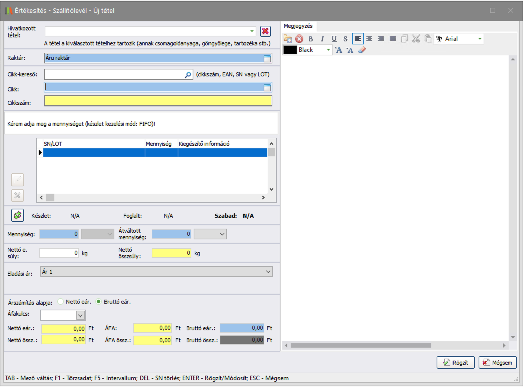 mezőbe a cikkhez tartozó megjegyzést. - Ha szeretné rögzíteni a tételt, kattintson a