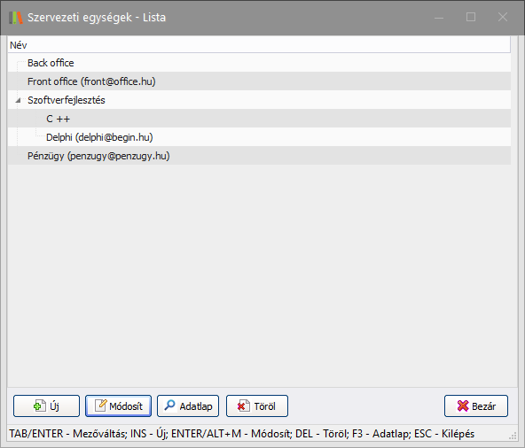 -  : a kijelölt szervezeti egység adatlapjának megtekintése.