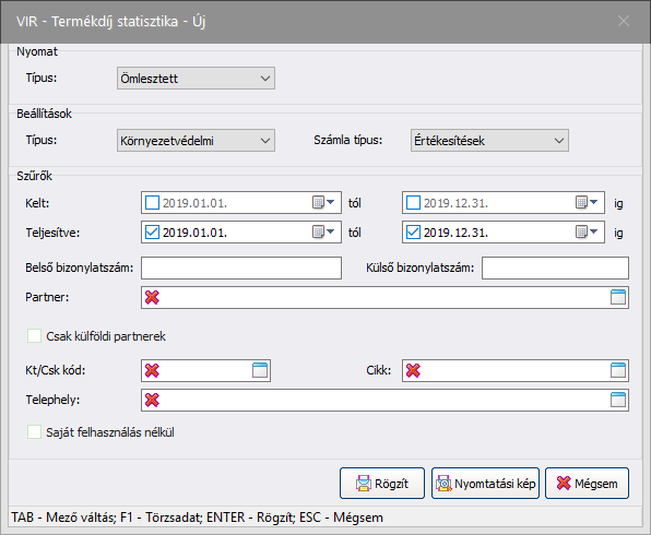 legördülő menüből kiválaszthatja, milyen típusú statisztikát szeretne nyomtatni. 3 lehetőség közül választhat: