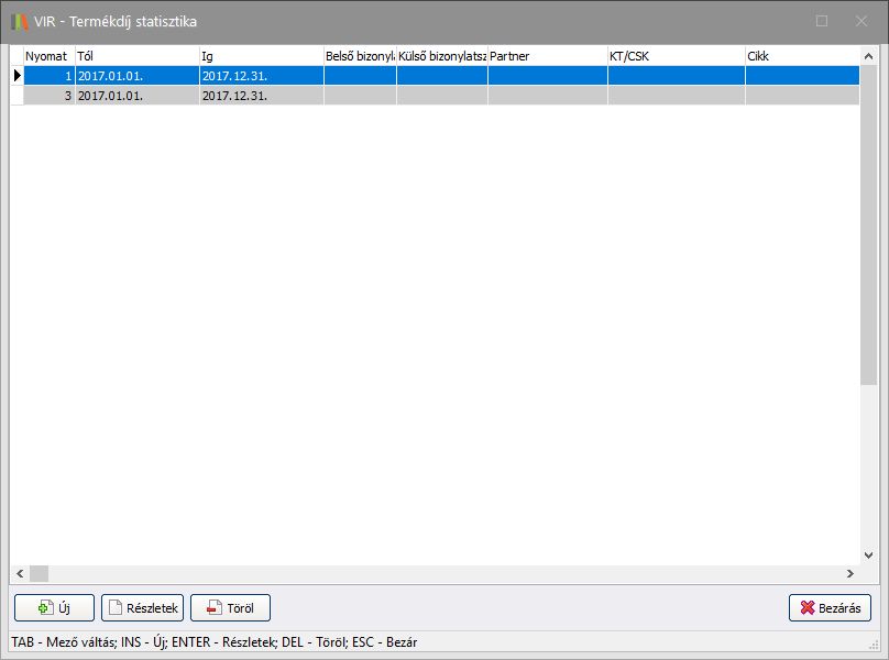 „Részletek” gombot. Itt megfigyelheti, hogy a kiválasztott statisztikát újra tudja nyomtatni mind a három típusban. A beállítások és a szűrési feltételek, viszont itt már le vannak tiltva, azokat nem módosíthatja.