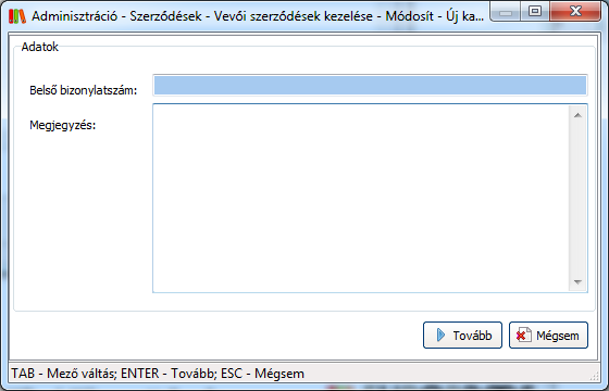 mezőt! Ez egy szabad szöveges mező, de a korában bevitt értékek a listából kiválaszthatók. - Adja meg a szerződés megnevezését! Használja a Megnevezés: