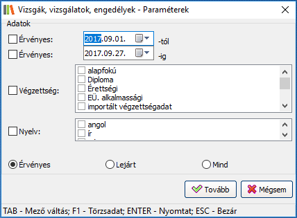 A HR modulban rögzített dokumentumok listázása érvényességük alapján.