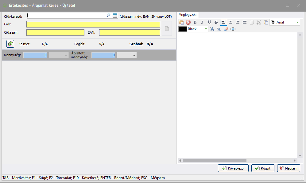 Ebben az ablakban van lehetősége az Árajánlat kérések típusú bizonylatok karbantartására.