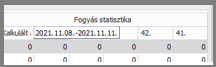 A fogyás az aktuális hét, illetve az aktuális hónap fogyását mutatja az aktuális napig. A Fogyás statisztikában a kiválasztott heteket az oszlop fejlécben arab számokkal, a hónapokat pedig római számokkal jeleníti meg a rendszer (naptár szerinti megjelenítés). A kiválaszott intervallumon belül a periódusok fordított sorrendben jelennek meg, ami azt jelenti, hogy az aktuális időponthoz az időben legközelebbi jelenik meg balra, majd jobbra halad az időben legtávolabbi felé. Az egérkurzort a hetek, valamint a hónapok fölé húzva látható a kiválasztott periódus intervalluma dátum szerint.