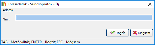 Elérése: Törzsadatok -> Egyéb -> Színcsoport törzs