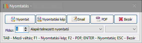 A program számos részén találkozhatunk a nyomtatás ablakkal. Ez eltérő lehet attól függően, hogy a program mely részében és mit nyomtatunk. Általánosságban elmondható, hogy az alábbi gombok mindig megjelennek a nyomtatás ablakban: