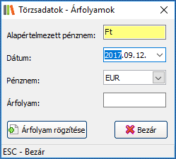- a rendszer paraméterei között a funkció engedélyezett legyen (a beállítás helyét a Törzsadatok beállításai – Árfolyam törzs beállítása c. fejezetben találja),