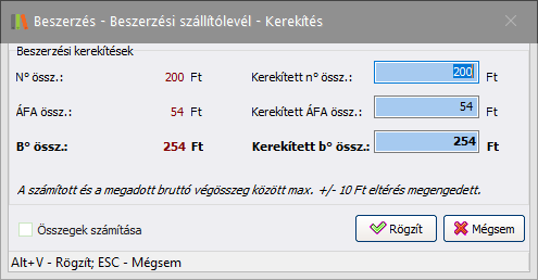 (Rögzít) gombbal rögzítheti a beszerzési bizonylatot.