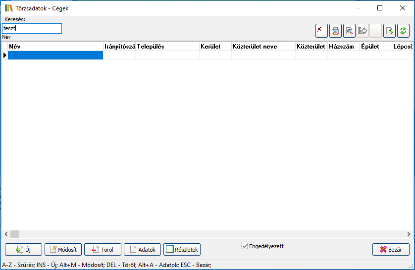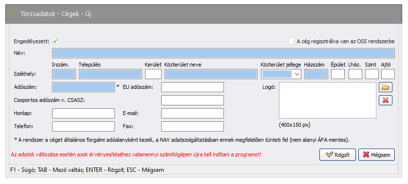 Elérése: Törzsadatok -> Cégadatok -> Cég törzs -> alsó gombsoron