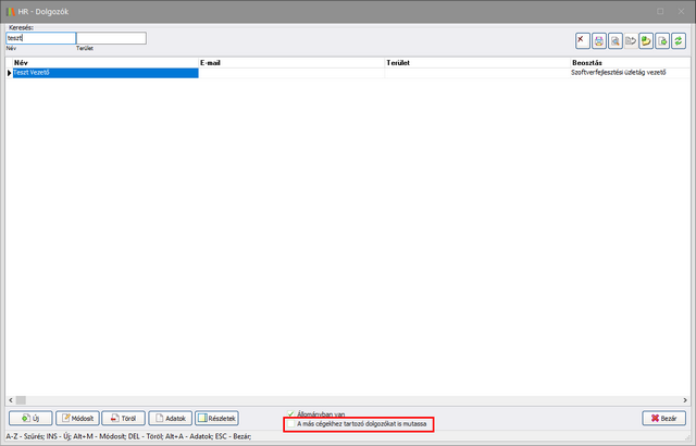 A projekt alapértelmezett felelőse a bejelentkezett dolgozó
