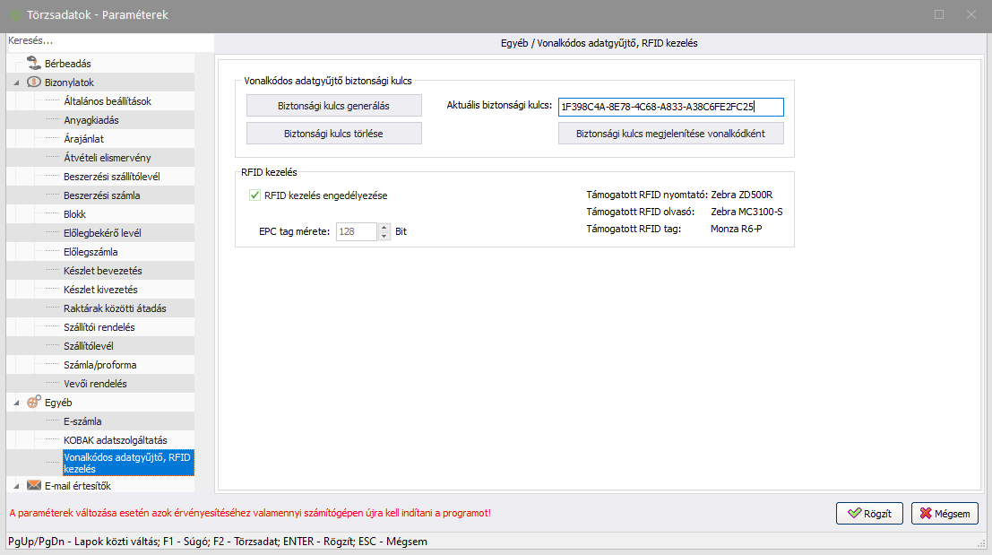 A rendszerben lehetőség van RFID olvasó és nyomtató használatára. A funkcióhoz licensz szükséges, így amennyiben használni szeretné a funkciót, keresse kollégáinkat.