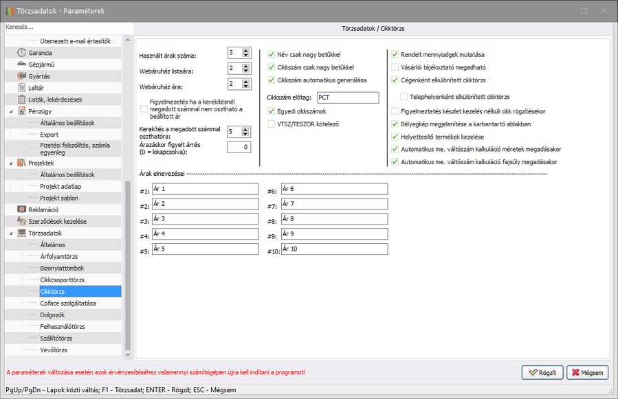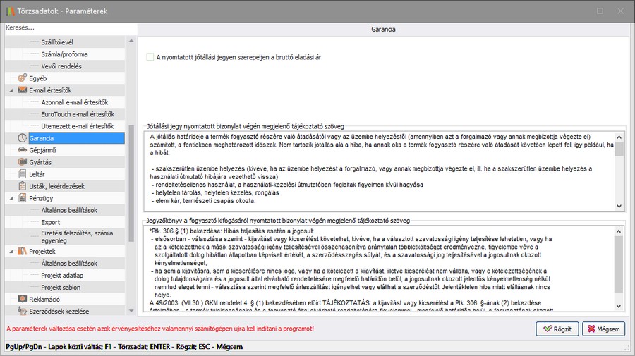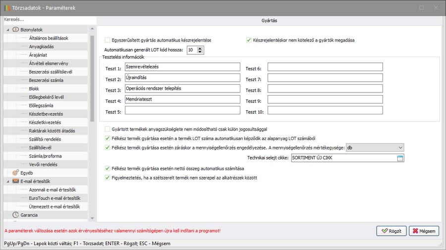 Fontos! Az ebben az ablakban előforduló bármely paraméter változtatása esetén a kívánt hatás érvényesítéséhez valamennyi, a rendszert futtató számítógépen újra kell indítani a programot!