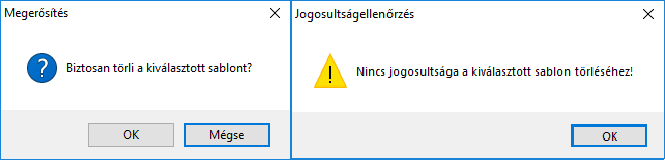 A jogosultság alapján valamely ablakkal találkozik a sablon törlése során:
