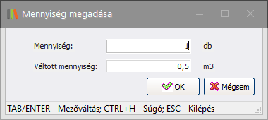 gombot. Amennyiben van a cikkhez mennyiségi egység váltás, úgy bármely mennyiség megadása esetén a másik mennyiség mező értékét kiszámolja a rendszer.
