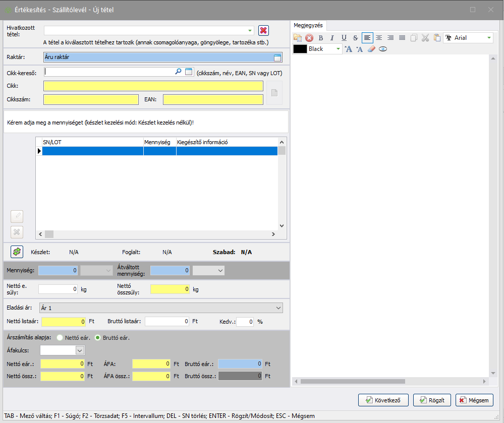 mezőbe a cikkhez tartozó megjegyzést. - Ha szeretné rögzíteni a tételt, kattintson a