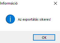 A rendszerben üzenet ablak jelenik meg minden sikeresen lezárult Exportról: