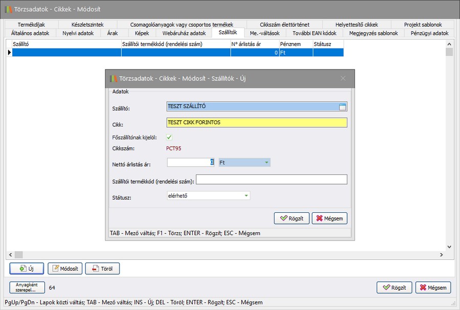 (OK) gombra! Ekkor egy új ablakban megjelennek a cikk szállítóhoz tartozó adatai. Ha mégsem szeretne új szállítót rögzíteni a cikkhez, kattintson a