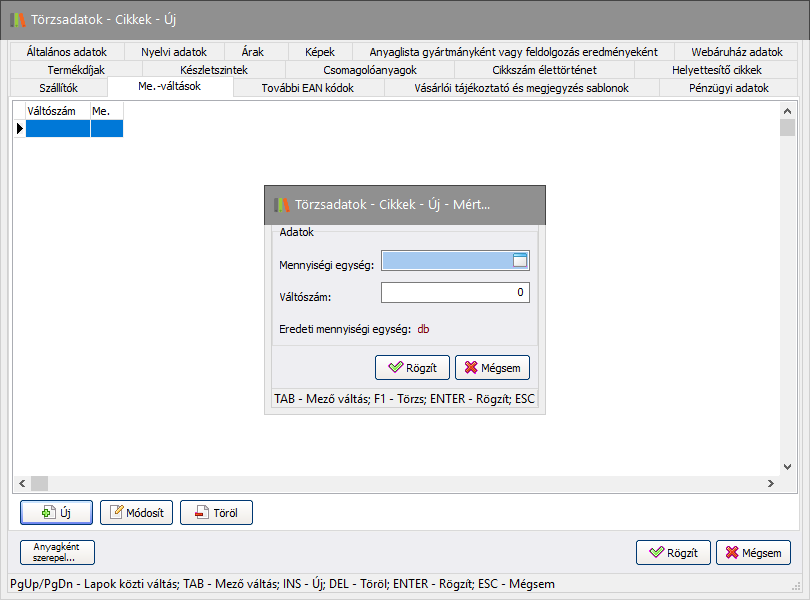 Ezen a fülön van lehetősége megadni alternatív mennyiségi egységet, melyet a rendszer átváltásra tud használni.