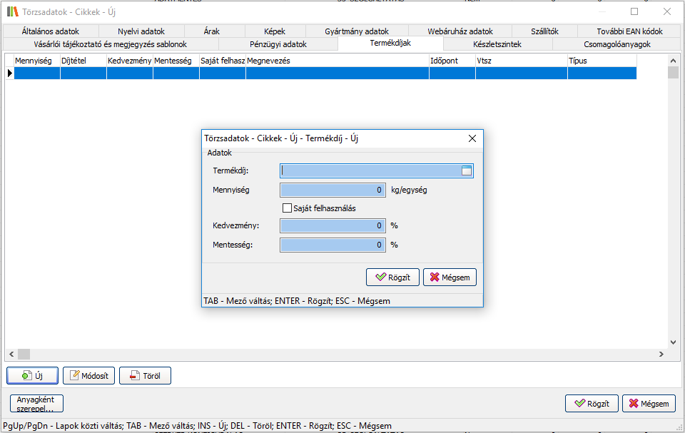 - Termékdíjak fülön termékdíjat adhat a termékhez.