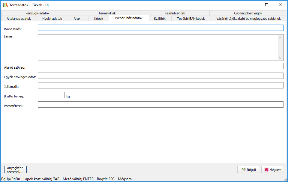 Új cikk létrehozásakor a megjelenő ablakban az alábbi fülekkel találkozhat: (ezeket alább részletesen bemutatjuk):