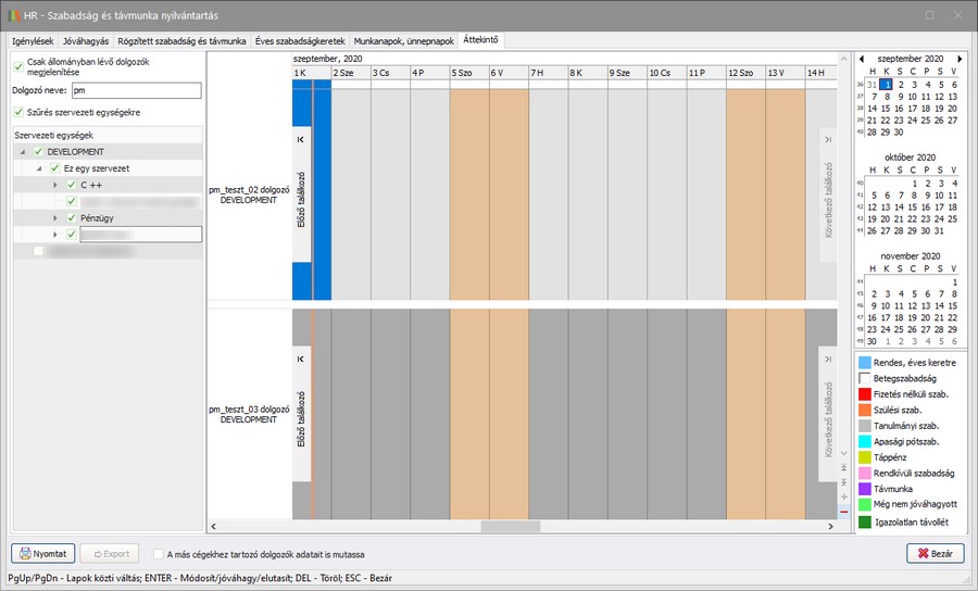 Továbbá lehetőség van a dolgozók szervezeti egységenkénti szűrésére is.