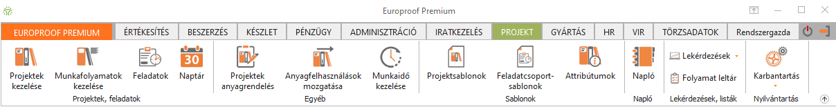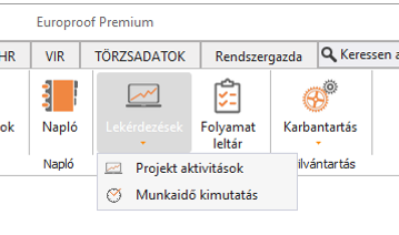 (Lekérdezések) ikon segítségével két funkció érhető el. Az egyik a Projekt aktivitás, a másik pedig a Munkaidő kimutatás funkció.