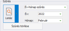 A felső menüsor gombjainak segítségével szűréseket végezhet a felhasználó, valamint lehetőség nyílik azok nyomtatására és exportálására is. (Bővebben az exportálásról az Adatbázis export, valamint a nyomtatásról a Törzsadatokról általában – Lista nyomtatása c. fejezetben olvashat.)