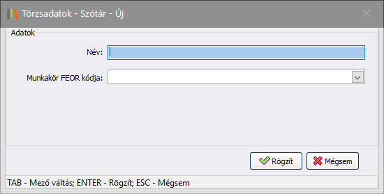 Egy HR specifikus törzsadat, a dolgozó munkaköre rögzíthető itt egy szabad szöveges mező segítségével, valamint megadható a munkakörhöz tartozó munkaköri (FEOR) kód.