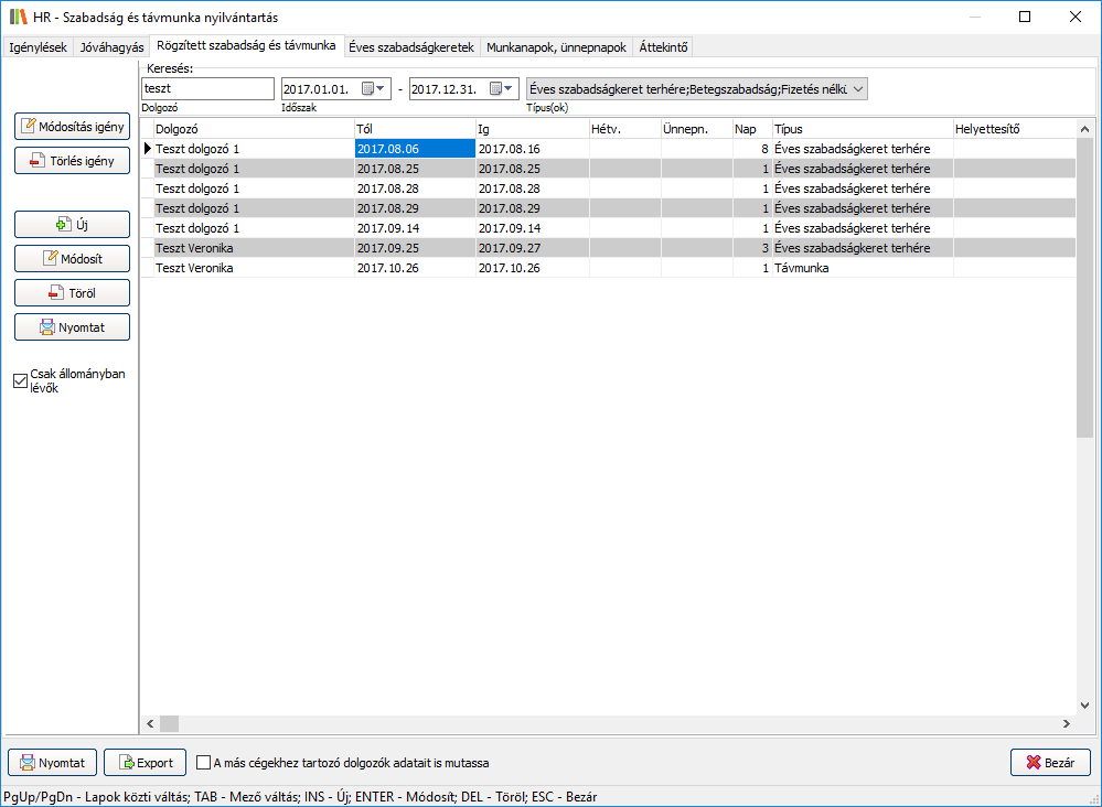 Csak állományban lévők: bejelölése esetén csak az állományban lévő dolgozók listázása