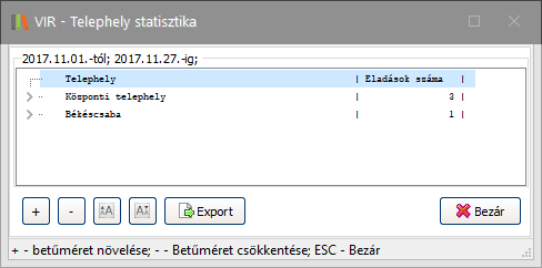 A lekérdezés telephelyenkénti bontásban mutatja meg az értékesítések darabszámát, illetve részletezve magukat az értékesítéseket is. Így arra használhatja, hogy kimutatást készítsen a telephelyek forgalmáról, illetve ez hogyan aránylik a teljes forgalomhoz és más telephelyek forgalmához.