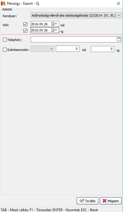 - Az export funkció az egyes adatádásokhoz megjegyzi, azok mely bizonylatokat tartalmaznak. Az exportálás paramétereihez elérhető egy új kapcsoló, mely segítségével megadható, hogy az exportált állományba a rendszer minden, a szűrési feltételnek megfelelő bizonylatot szerepeltessen, vagy csak azokat, amelyeket még korábban nem voltak exportálva.