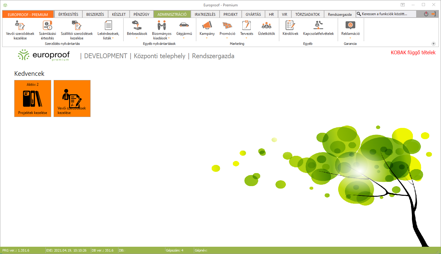 Bejelentkezést követően ez a felület jelenik meg, innen kiindulva érhető el a program összes funkciója. A programban engedélyezett menüpontok és funkciók elérhetősége függ az Ön által megvásárolt licensztől!